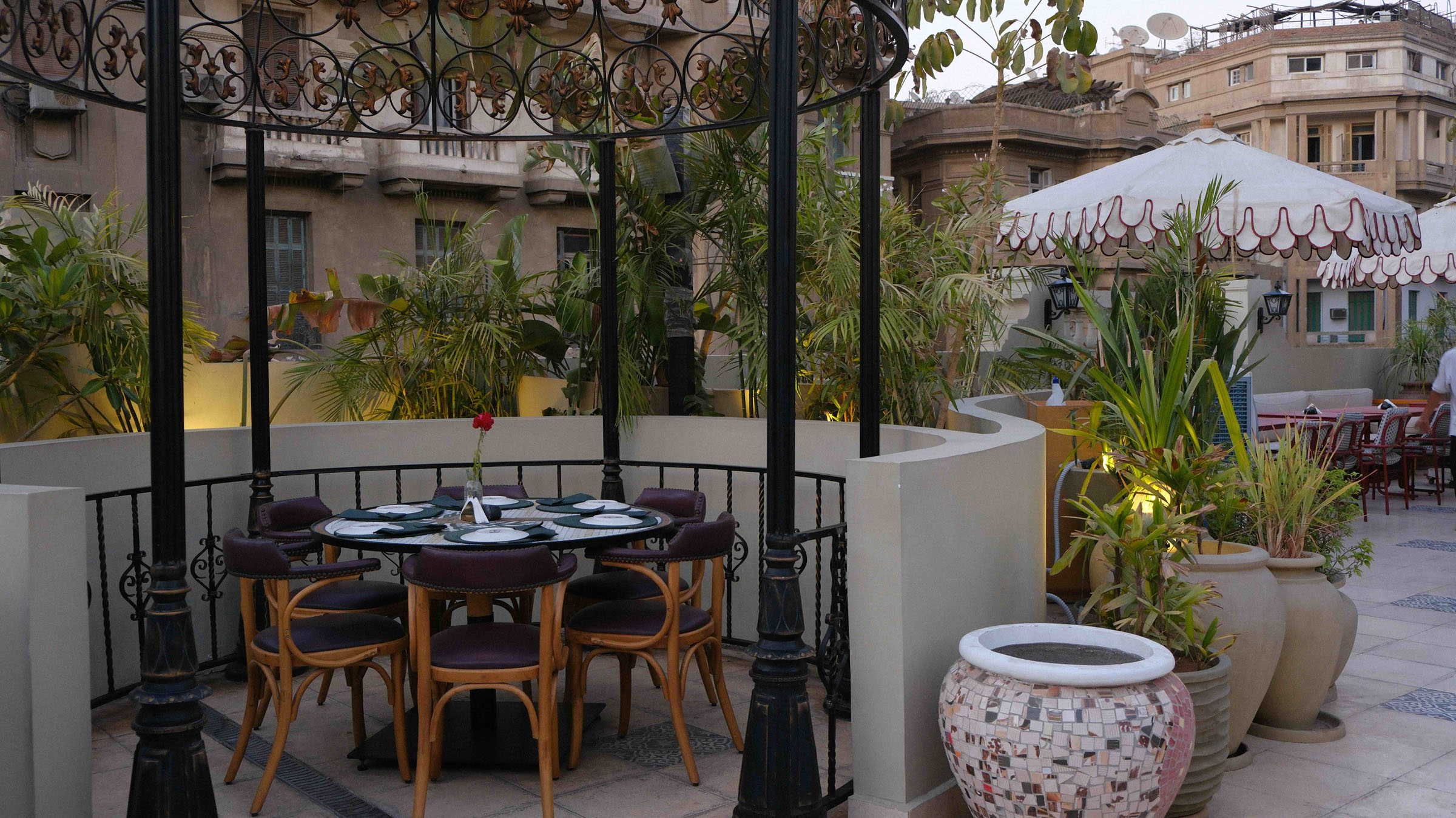 Along Hoda Shaarawy Street, antiques dealers sit in dim shops crammed with lamps, cabinetry, pottery and ornate cornices. Interspersed with them are shisha bars and a tiny mosque painted a celestial green-blue. Two blocks to the south, in the circa-1896 Viennoise building, the local cool kids now convene at Mazeej Balad, a five-room hotel with art-filled interiors and a rooftop bar-restaurant that buzzes day and night. Mazeej Balad, which opened last winter, brings Cairo both a sleek-looking boutique hostelry and excellent modern Egyptian food – two areas in which the city, despite all its momentum, remains in lamentably short supply. That its operators – Ahmed Ganzoury and Kareem Nabil, the founders of events company G’nK Group – chose to open Downtown, rather than in Zamalek, is telling.